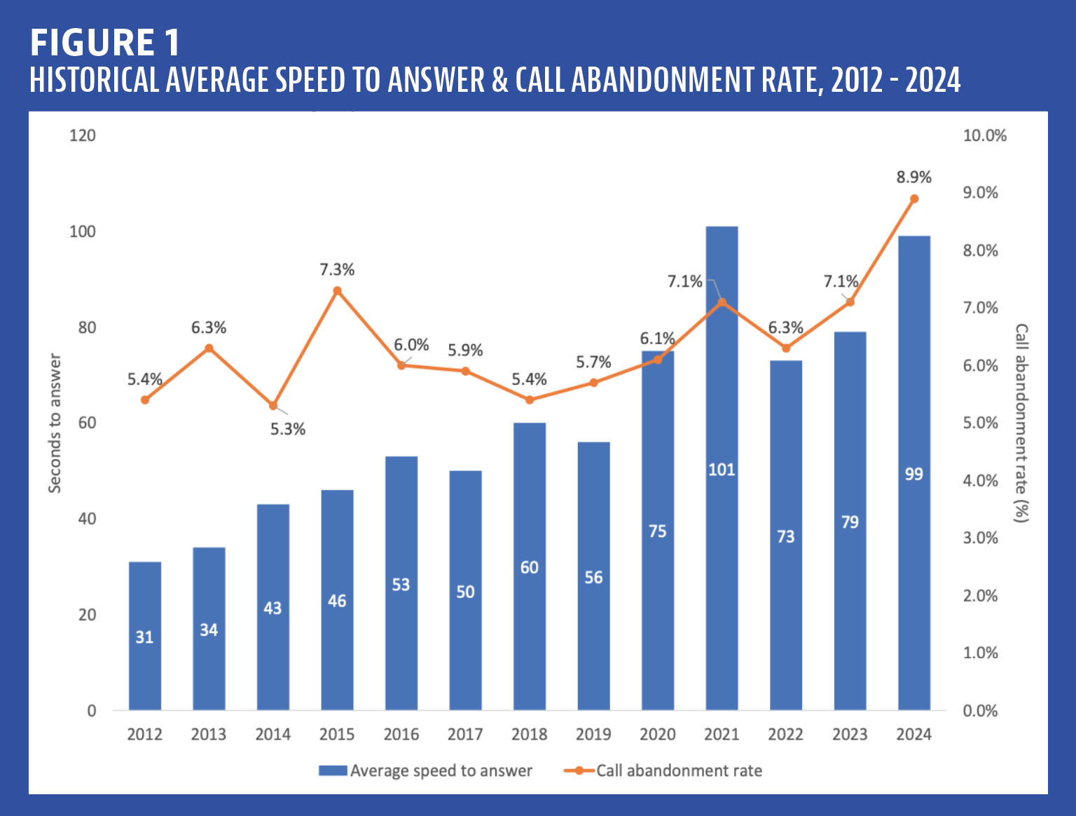 Call abandonment rate did not show any particular upward trend until the same time period, with 2024’s abandonment rate being the highest yet recorded. (SEE FIGURE 1)